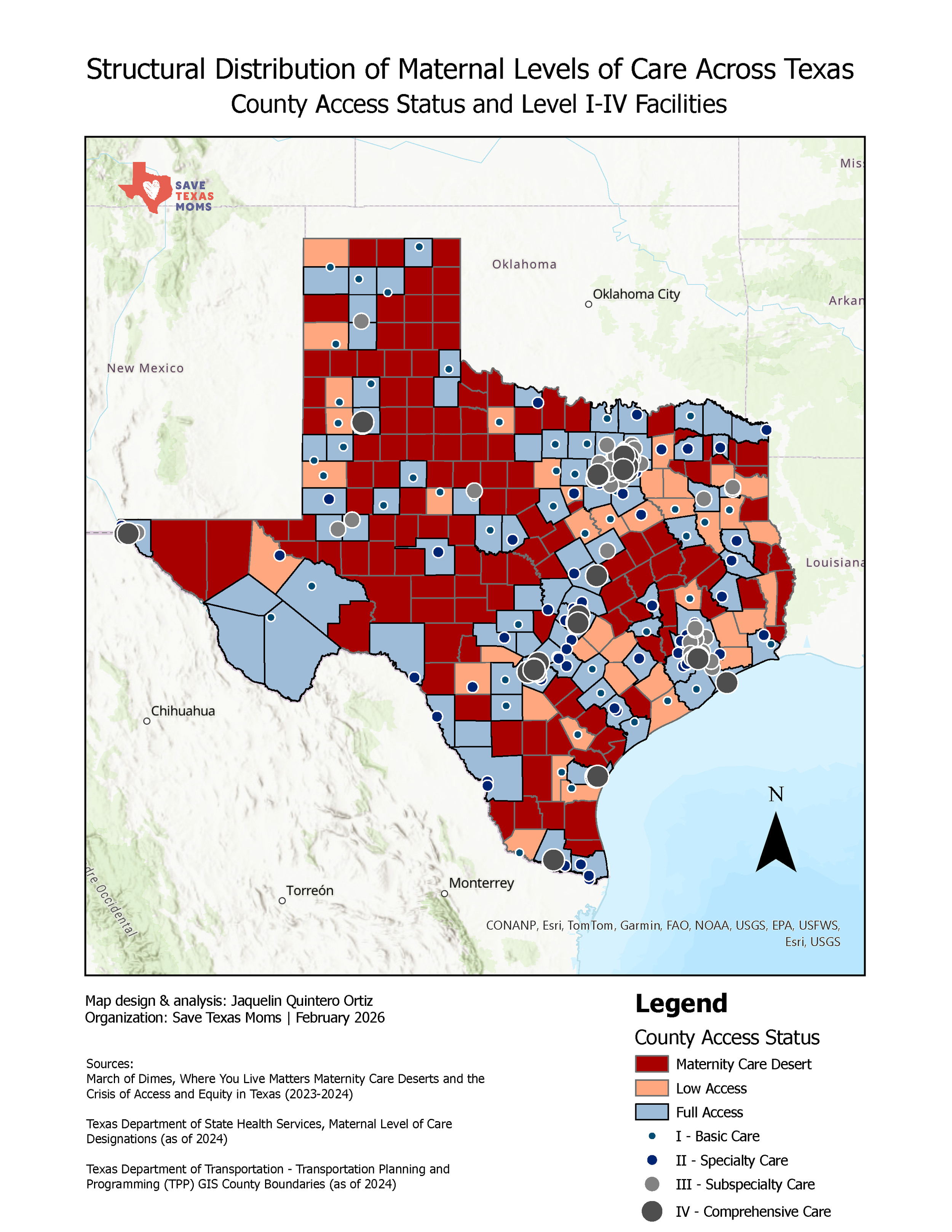 Save Texas Moms conducts geographic analysis to better understand these structural patterns across the state. This data helps identify gaps, inform community-based solutions, and support evidence-driven advocacy.